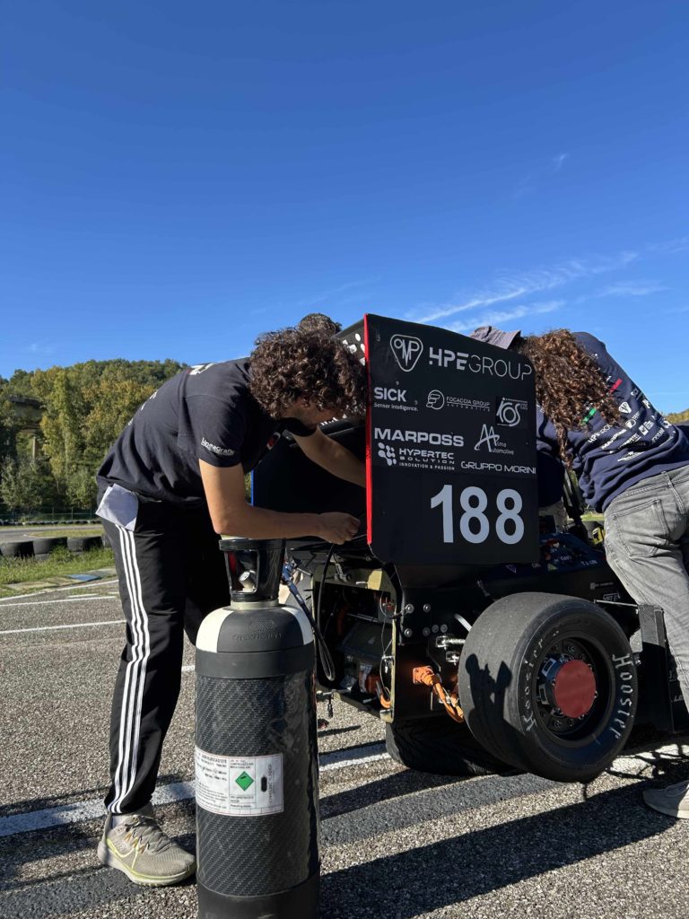 Avere a disposizione una bombola capiente, leggera e sicura significa per UniBo Motorsport operatività più continua, interruzioni ridotte e una logistica di rifornimento più semplice ed efficiente.